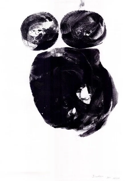 Towards the end of my third pregnancy I began a series of print works on paper using acrylic paint applied to my body. I applied the paint, thickly with a sponge and carefully lowered my nude body to the paper where my breasts and enlarged uterus created an enduring mark that would live beyond the fleeting months of pregnancy.